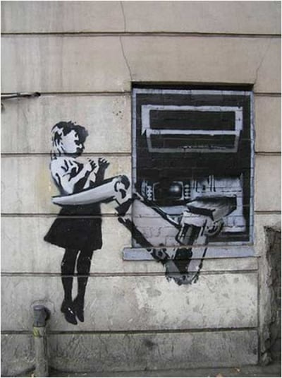 Banksy Cash Machine Girl Graffiti - Exmouth Market, London