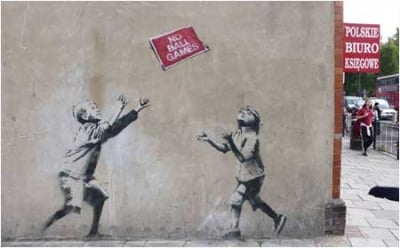 Banksy No Ball Games Graffiti - Turnpike Lane, London