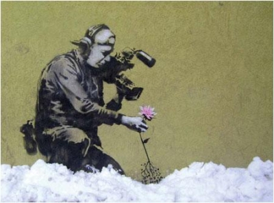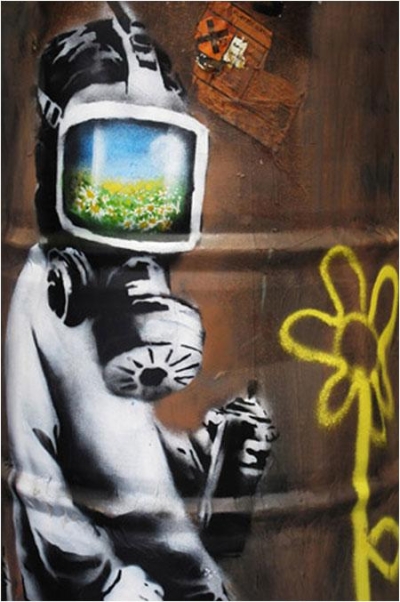 Banksy Sunflower Field Gas Mask Graffiti - London